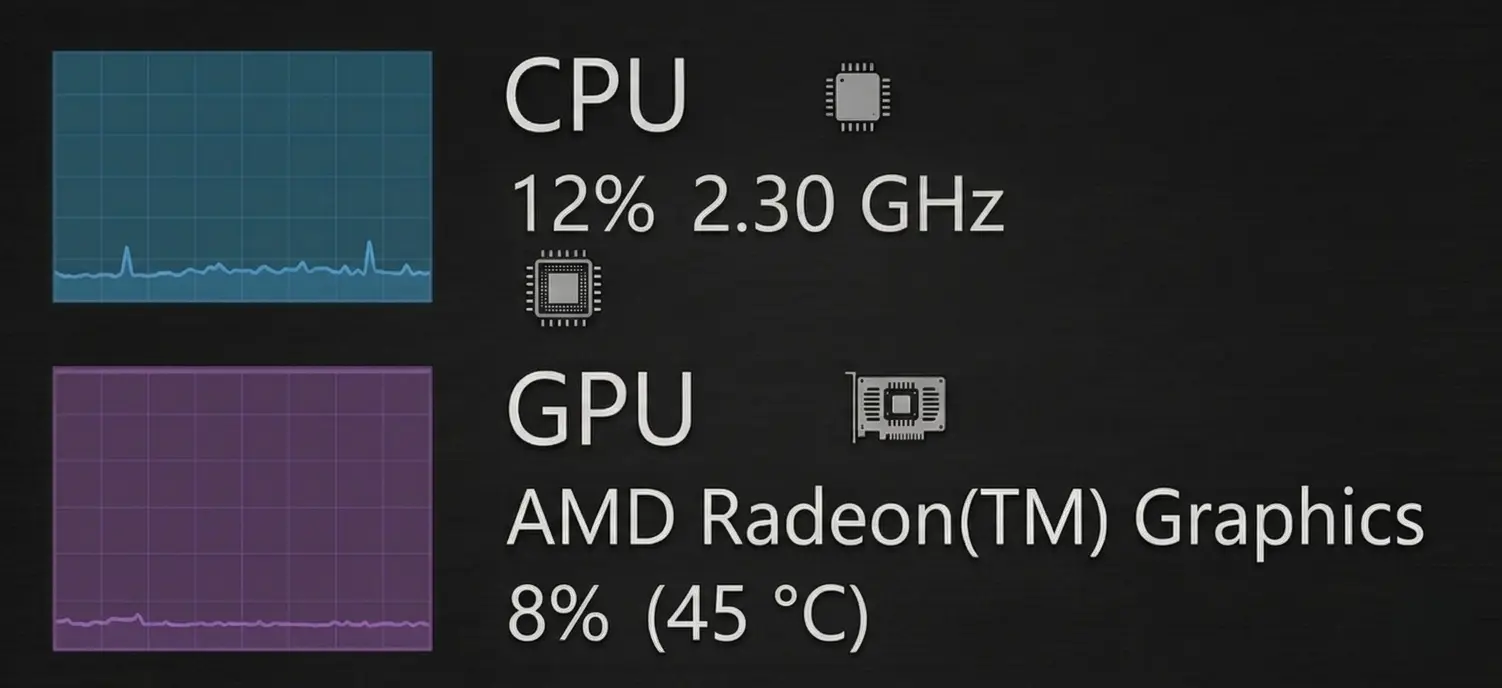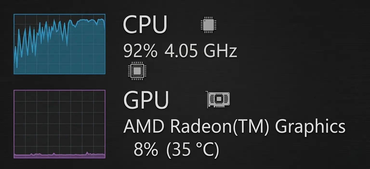 Both components at low utilization: Neither component is working hard, yet performance is poor. This almost always points to a software-side issue: a poorly optimized game, driver problems, a frame rate cap active in settings, V-Sync limiting output, or a system bottleneck elsewhere such as storage or RAM. Check your game settings and drivers before assuming a hardware problem.